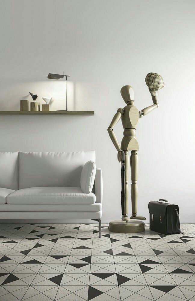Due colori, bianco e nero. Linee pulite e geometriche per rivestire i pavimenti.