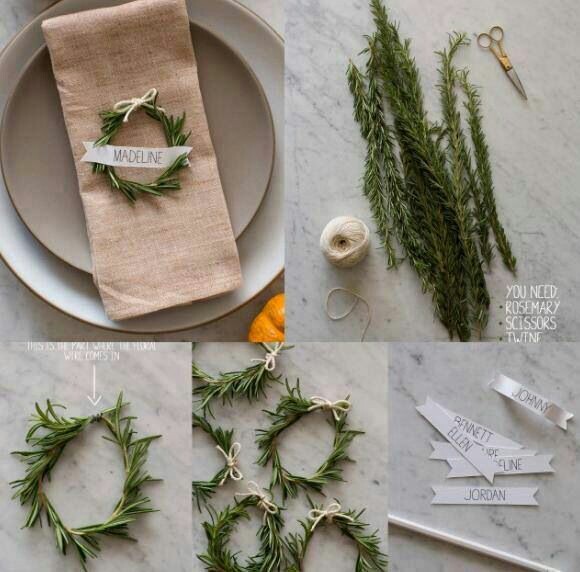 Ci sono piccoli accorgimenti, partendo dai segnaposti ad esempio. In questo primo post blog faremo riferimento ad uno stile naturale con toni neutri dove a spiccare è solo il verde del rosmarino (facilmente reperibile in questa stagione), aromatico e delicato nella forma.