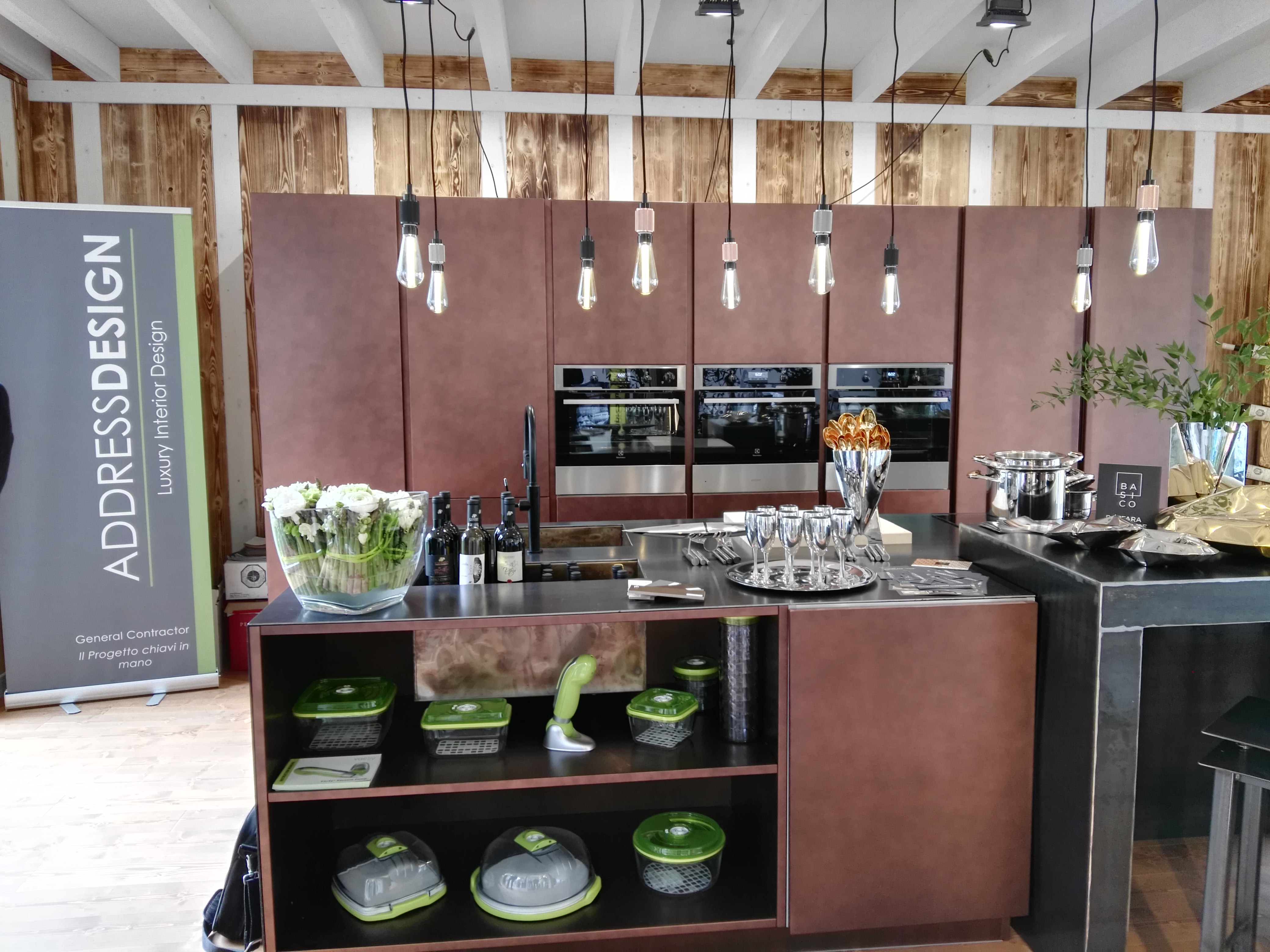 Dirigendomi verso il Chiostro grande che porta alla Sacrestia Monumentale mi sono trovata davanti un allestimento “verde”. Si, proprio un giardino curatissimo con panchine (dove ho trovato ristoro) per poi svelarsi nell’animo. Una casetta posta a metà del percorso custodiva una cucina, centro di tutto così come nel quotidiano simbolo di convivialità. L’evento che riuniva eccellenze italiane “Officina dell’abitare e dello stile” firmato dallo studio di progettazione Address Design puntava proprio a far immergere il visitatore in un’atmosfera rilassante per ammirare l’anima di casa. La cucina splendida, di Maior Cucine, in una finitura ramata aveva un piano in ferro realizzato a mano da un’artista, Ruben Bertoldo. Un percorso d’arte e di design. Tante opere in ferro sparse nel Chiostro circondate da creazioni di verde, piante e fiori, curate da Silvia Vigé agronomo e giornalista. Era possibile anche visitare la Sacrestia Monumentale di grande impatto. Austera e imponente.