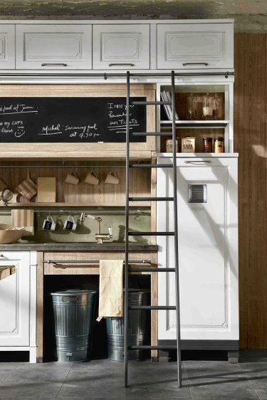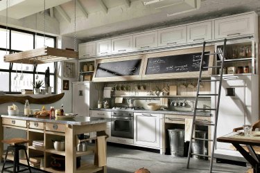 La cucina Nolita si caratterizza per la scelta di esaltare, accostandoli, gli elementi materici come il legno sbiancato, il metallo e i mattoni a vista, particolari che conferiscono uno stile prettamente industrial. Per personalizzare l’angolo cottura si possono sfruttate in modo originale le ante a ribalta formate da pannelli in lavagna inseriti in una cornice in legno neutro.