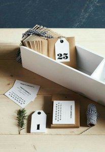 Proposta 2_Una cornice con 24 mini pacchetti che si possono confezionare in modo diverso anche con piccoli doni per regalare un sorriso ogni giorno.