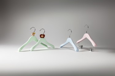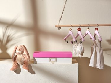 Azzurro, rosa e verde pastello sono le tonalità con cui si declinano i portabiti della linea Gioia che colorano le camerette di nuance delicate e atmosfere romantiche.